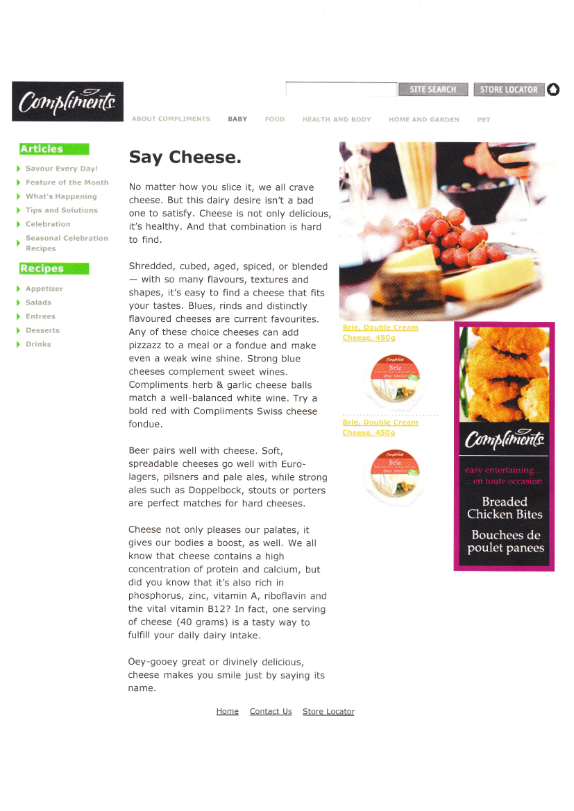 Sobey's Compliments 'Say Cheese' Web Article. Click image for larger view.